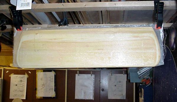 Wie du vielleich auf dem Bild erkennst, hängt der laminierte Flügel mit der Vorderkante nach unten im Gewebe wie in einer Schlaufe... es erübrigt sich eigentlich noch was dazu zu sagen... an der Vorderkante liegt in jedem Fall allein durch das Gewicht des Flügels das Gewebe am Holz an. Uff, du schaffst mich. Ich kann es nicht besser erklären.